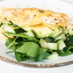 Hergestellt aus Vollkorn-Dinkelmehl, gefüllt mit hausgemachtem Hummus, frischem Spinat, Tomate, Gurke und gekrönt mit einem pochierten Ei für einen guten Proteinschub.